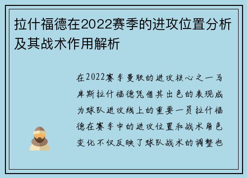 本文将对曼联前锋马库斯·拉什福德的转会价值进行全面评估,并结合其未来的发展机会进行详细分析。拉什福德作为英格兰足坛的年轻明星,近年来的表现稳步提升,无论是在曼联的表现,还是在国家队的竞技水平,都显示出巨大的潜力。本文将从四个方面进行分析:首先是拉什福德的市场价值与转会前景;其次是他在技术层面的优势与...